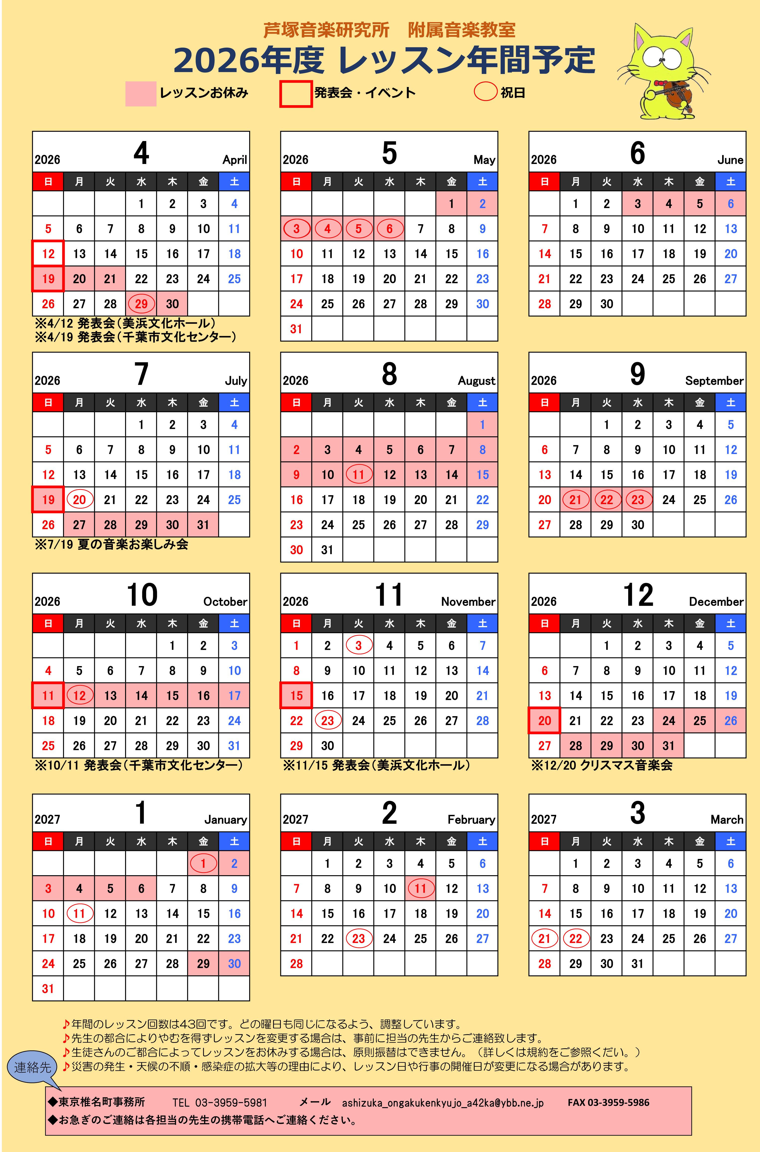 レッスン年間予定表