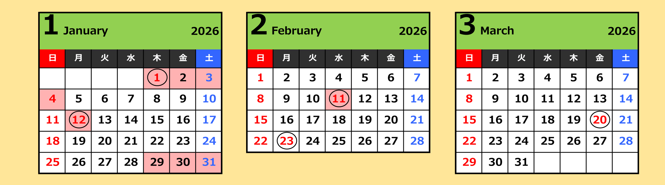 レッスン年間予定表